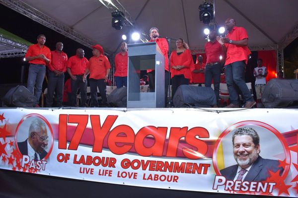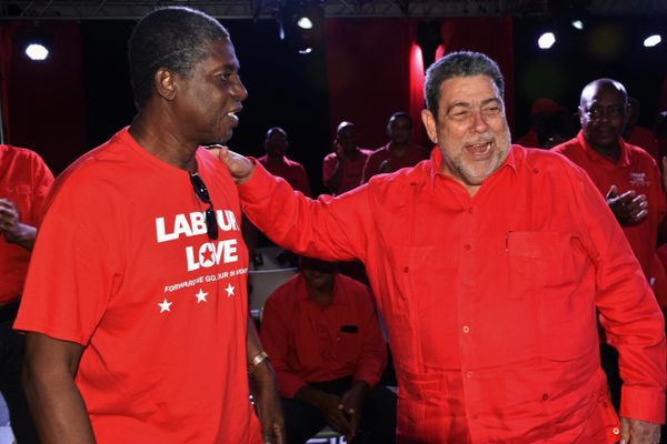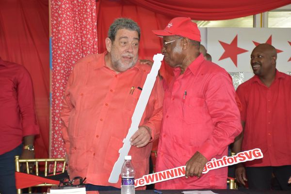 Past & present political leaders of the ULP- SIr Vincent & Comrade Ralph
